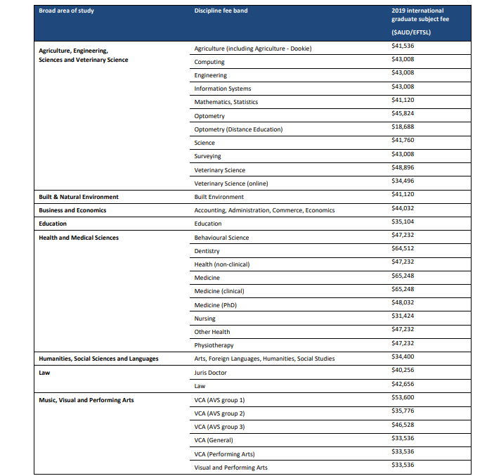 Table 2: 2019 international graduate subject fees