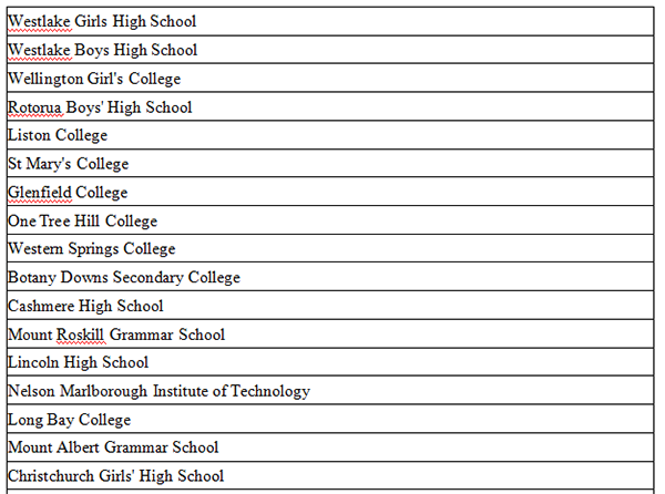 4.新西蘭高中申請名單推薦如下(新西蘭所有高中都可以申請,名單僅供參考)