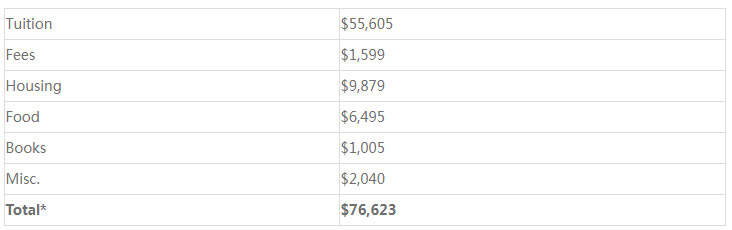 * 大一新生有434美元的入學培訓費。第一年的總費用為77057美元。