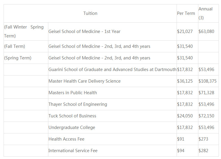 鏈接:https://admissions.dartmouth.edu/afford/cost-attendance
