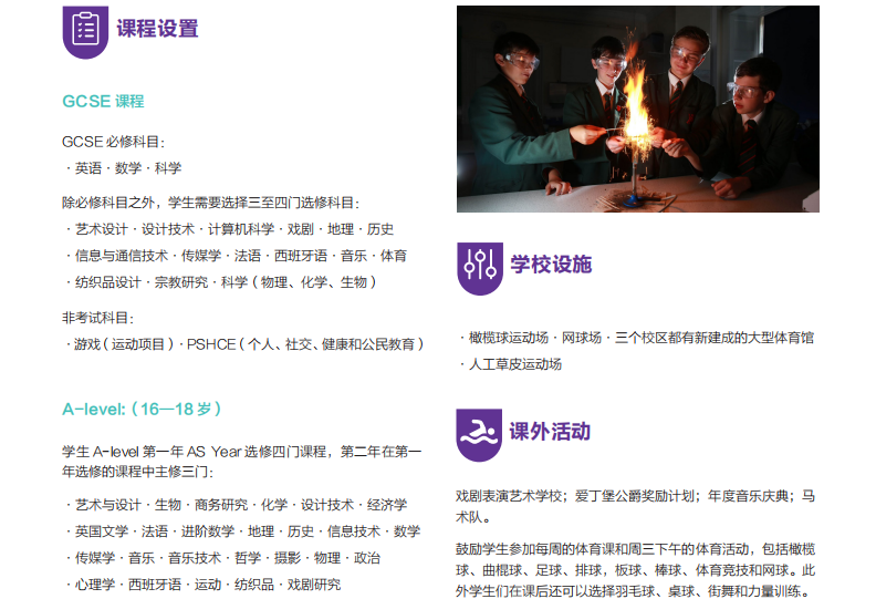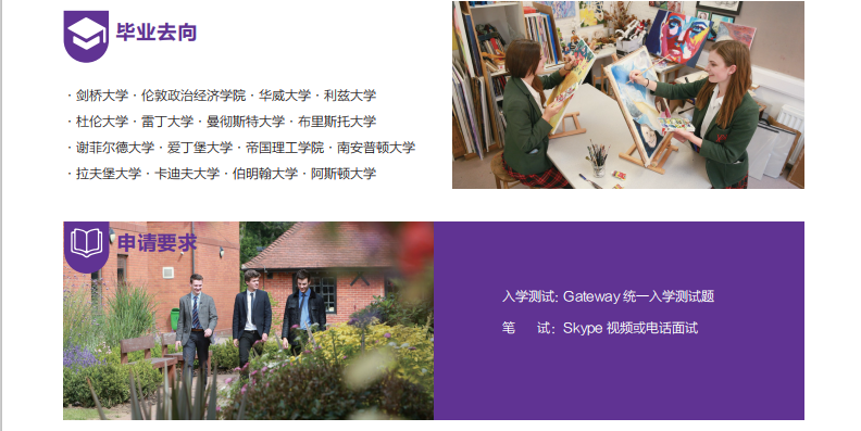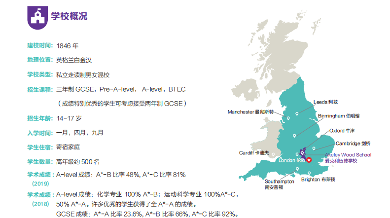 學(xué)校環(huán)境非常優(yōu)美,曾是牛津大學(xué)一個(gè)學(xué)院的分校區(qū),全部都是古典的有四百多年歷史的維多利亞時(shí)代的建筑,是英國(guó)最優(yōu)雅的校園之一。目前隸屬于最大的教育投資集團(tuán)Cognita,其主席 Mr Chris Woodhead 是英國(guó)前教育大臣首席視察官。集團(tuán)剛剛投資對(duì)學(xué)校設(shè)施及教室進(jìn)行裝修維護(hù),學(xué)校硬件設(shè)施齊全,嶄新漂亮。愛(ài)克利伍德學(xué)校人文關(guān)懷度極高,學(xué)校有一位擁有十多年國(guó)際學(xué)生教育經(jīng)驗(yàn)的老師親自負(fù)責(zé)國(guó)際學(xué)生的各種事物,不僅跟蹤學(xué)生的學(xué)業(yè)進(jìn)度,同時(shí)像家長(zhǎng)一樣密切關(guān)注學(xué)生的綜合成長(zhǎng),隨時(shí)給予必要的疏通和指導(dǎo),深受學(xué)生愛(ài)戴。學(xué)校學(xué)術(shù)成績(jī)斐然,針對(duì)國(guó)際學(xué)生專(zhuān)門(mén)設(shè)有英文輔導(dǎo)課程,根據(jù)學(xué)生的實(shí)際需求設(shè)計(jì)課程內(nèi)容和課時(shí),再結(jié)合英語(yǔ)環(huán)境,有效地提高學(xué)生的英語(yǔ)水平,一月及九月均可申請(qǐng)入學(xué)。在過(guò)去的十年內(nèi),愛(ài)克利伍德學(xué)校的畢業(yè)生去向包括牛津大學(xué)、劍橋大學(xué)、倫敦政治經(jīng)濟(jì)學(xué)院和其他享有名望的羅素集團(tuán)名校。